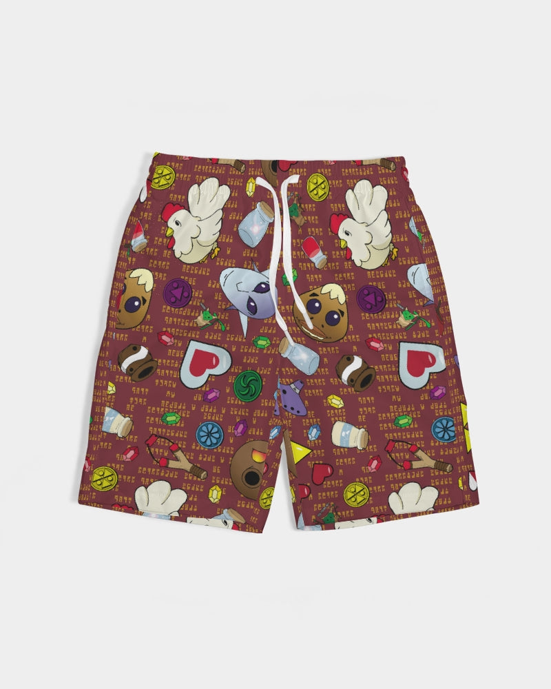 About The ArtA Terrible Fate Inspired by The Nintendo 64 Legend of Zelda games, this diaper features cursed masks, colorful rupees, bottles of potions, fairies and Lon Lon Milk. The background words are the Ocarina songs from both games written out in Ancient Hyrulian. Product DetailsStay comfy while swimming in our Kids Swim Trunks. Durable and complete with UPF 50+ for UV protection, they're perfect for all day water adventures.