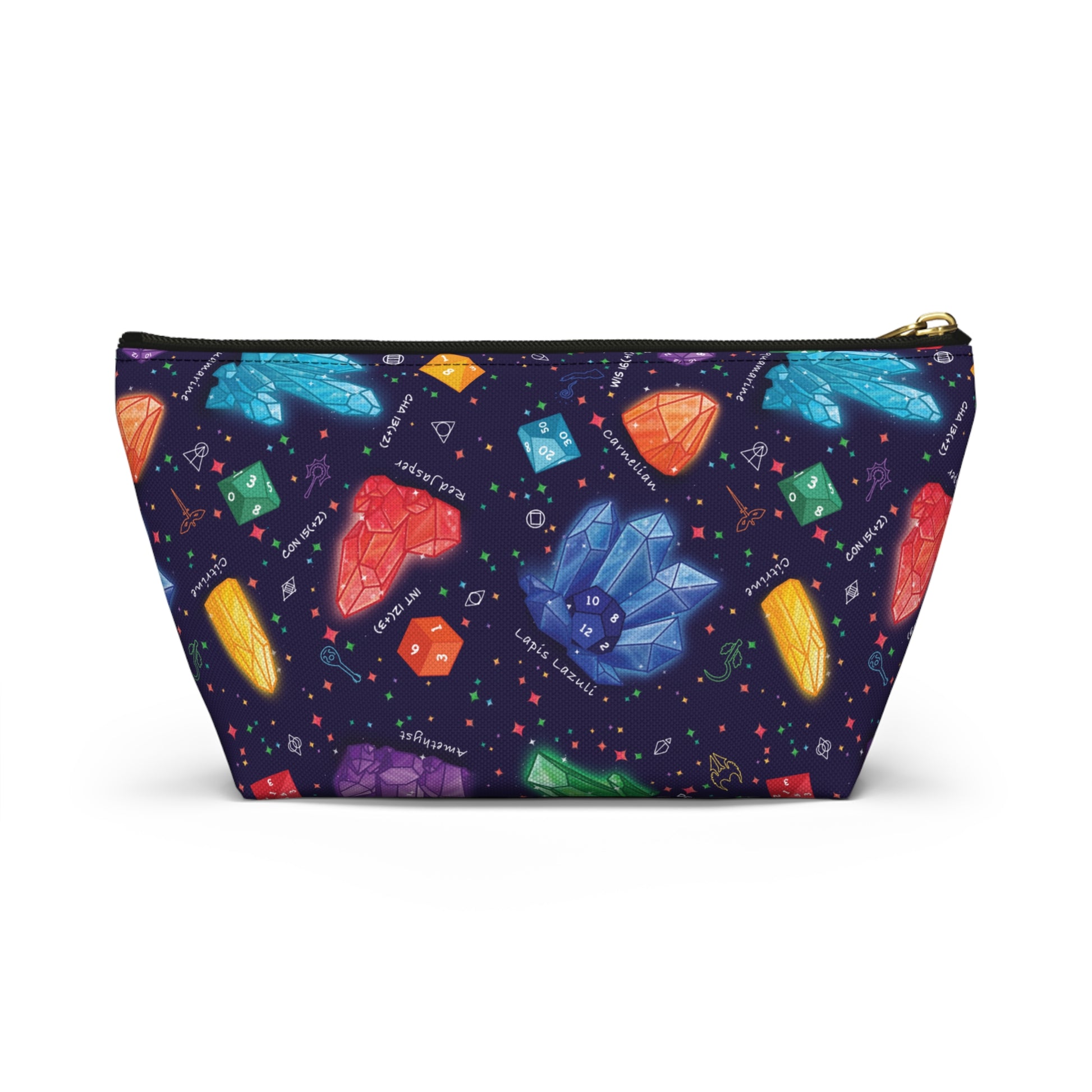 Our t-bottom pouches vary from small to large and can be used for pretty much anything. They make excellent pencil cases and cosmetic travel bags. They are constructed from a durable material with a zipper closure.